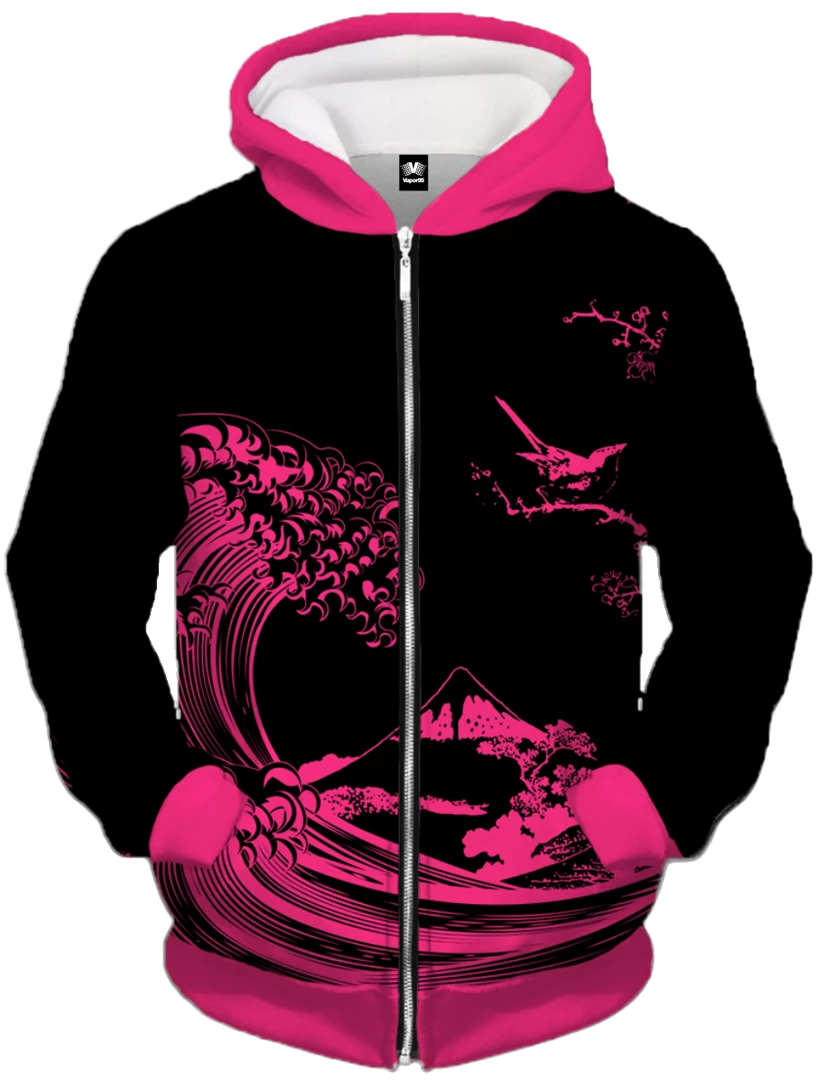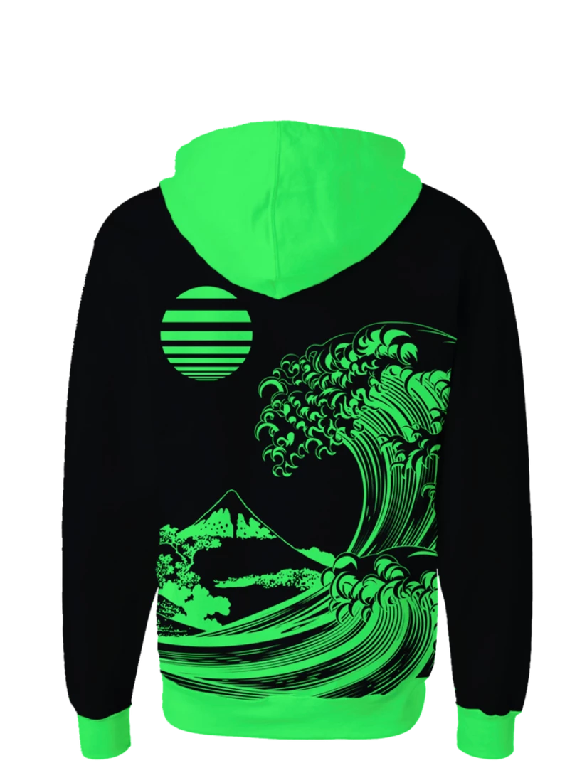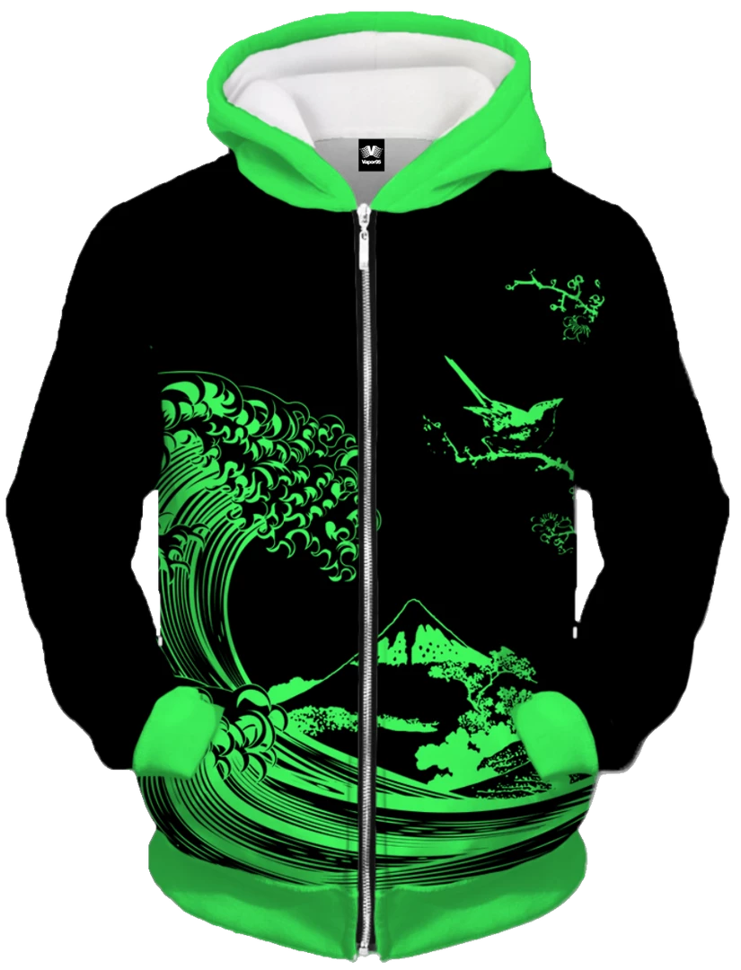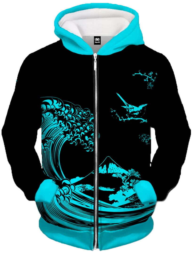 T6 All Over Print Zip Up Hoodies Fluorescent Wave Zip Up Hoodie