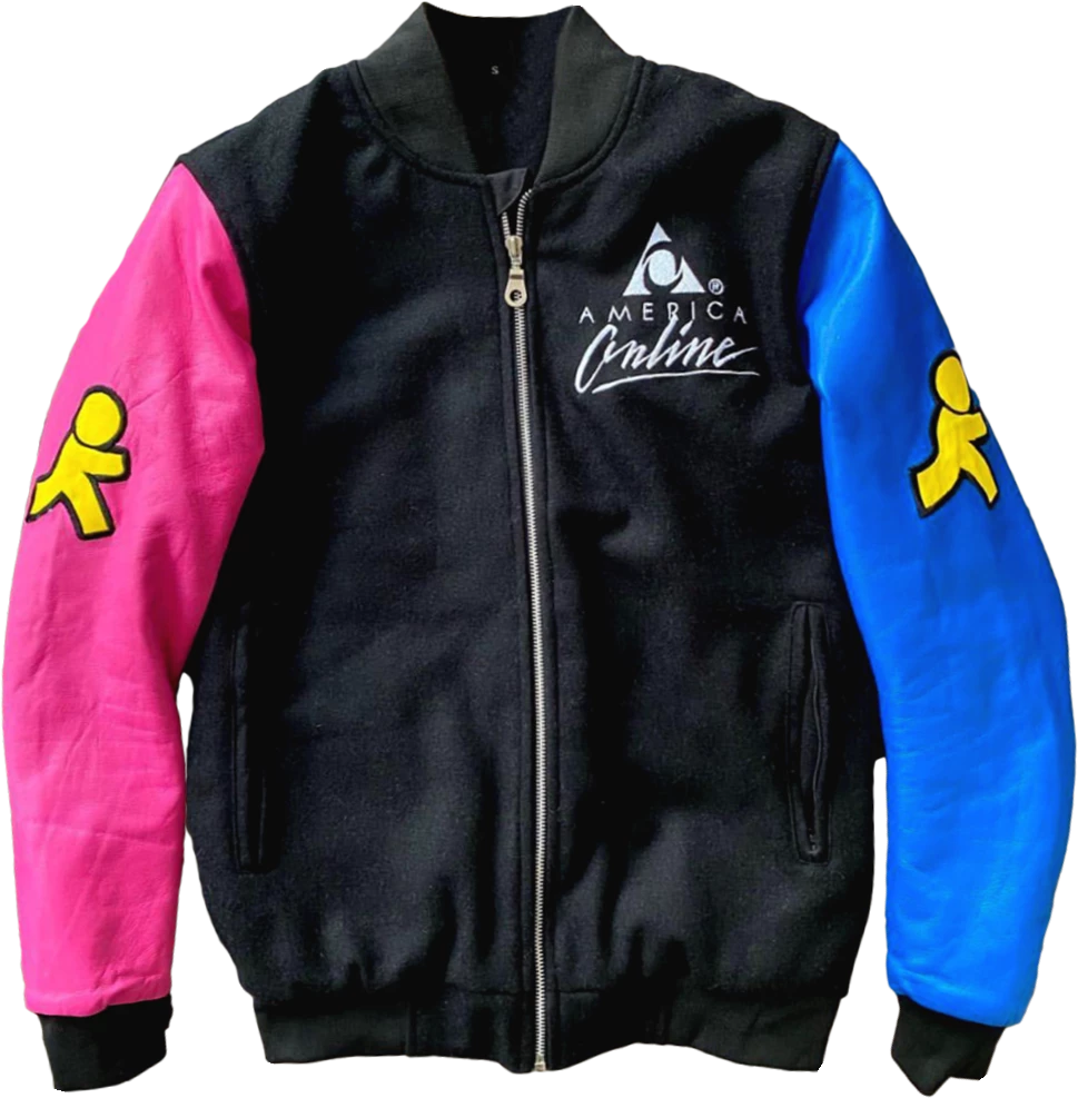 - This bomber jacket is made from Wool with Faux Leather sleeves and features embroidered graphics and a quilted lining.Β