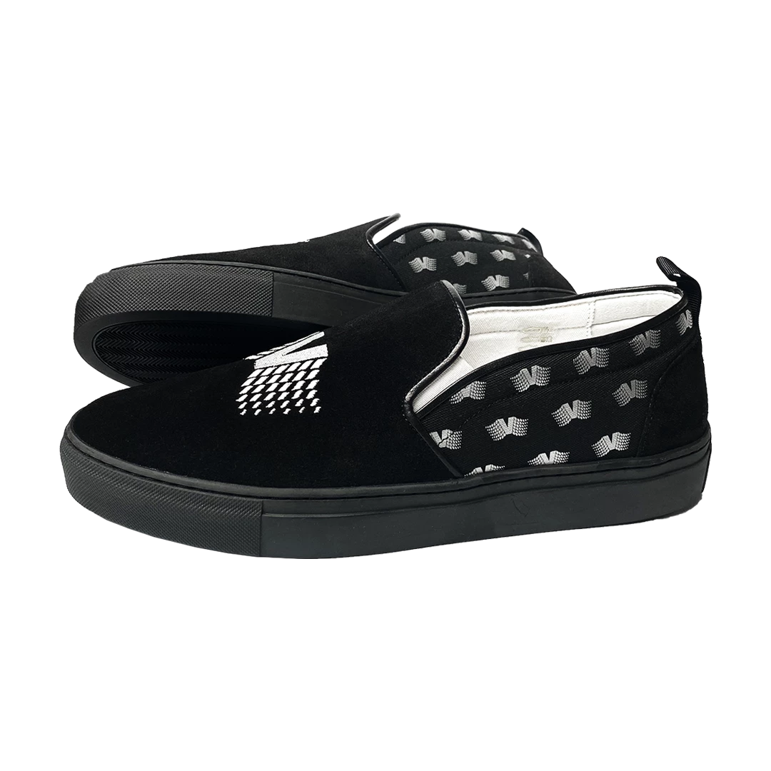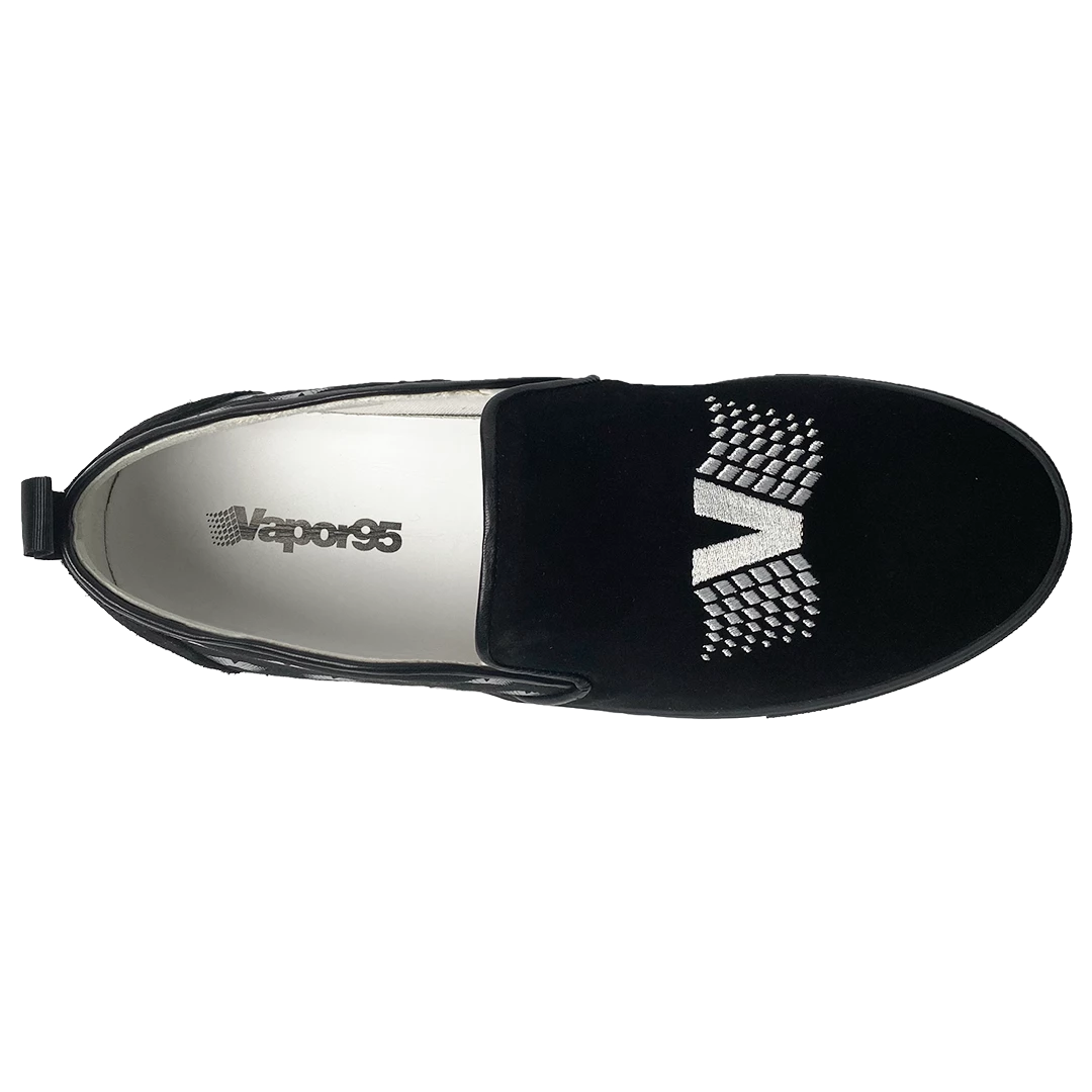 - PRESENTING THE BLADE SLIP-ON! A VAPORWAVE INSPIRED BLACK SUEDE AND CANVAS SNEAKER FEATURING A DURABLE, LIGHTWEIGHT RUBBER SOLE, ULTRA-COMFORTABLE CUSHIONED REMOVABLE INSOLE, SOFT LEATHER TO PROTECT ANKLE, STITCHING DETAILS, EMBROIDERED FRONT LOGO AND REFLECTIVE VAPOR95 LOGOS PRINTED ON SIDES.
