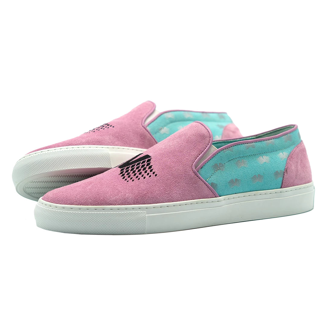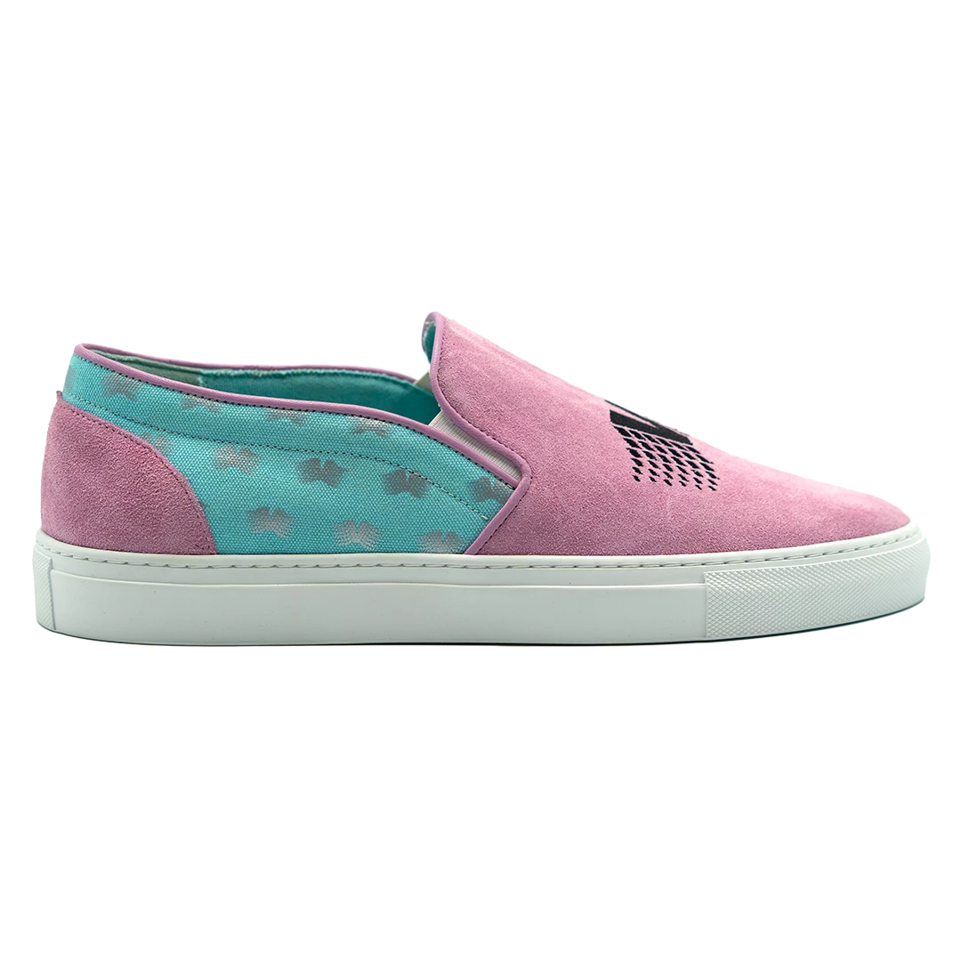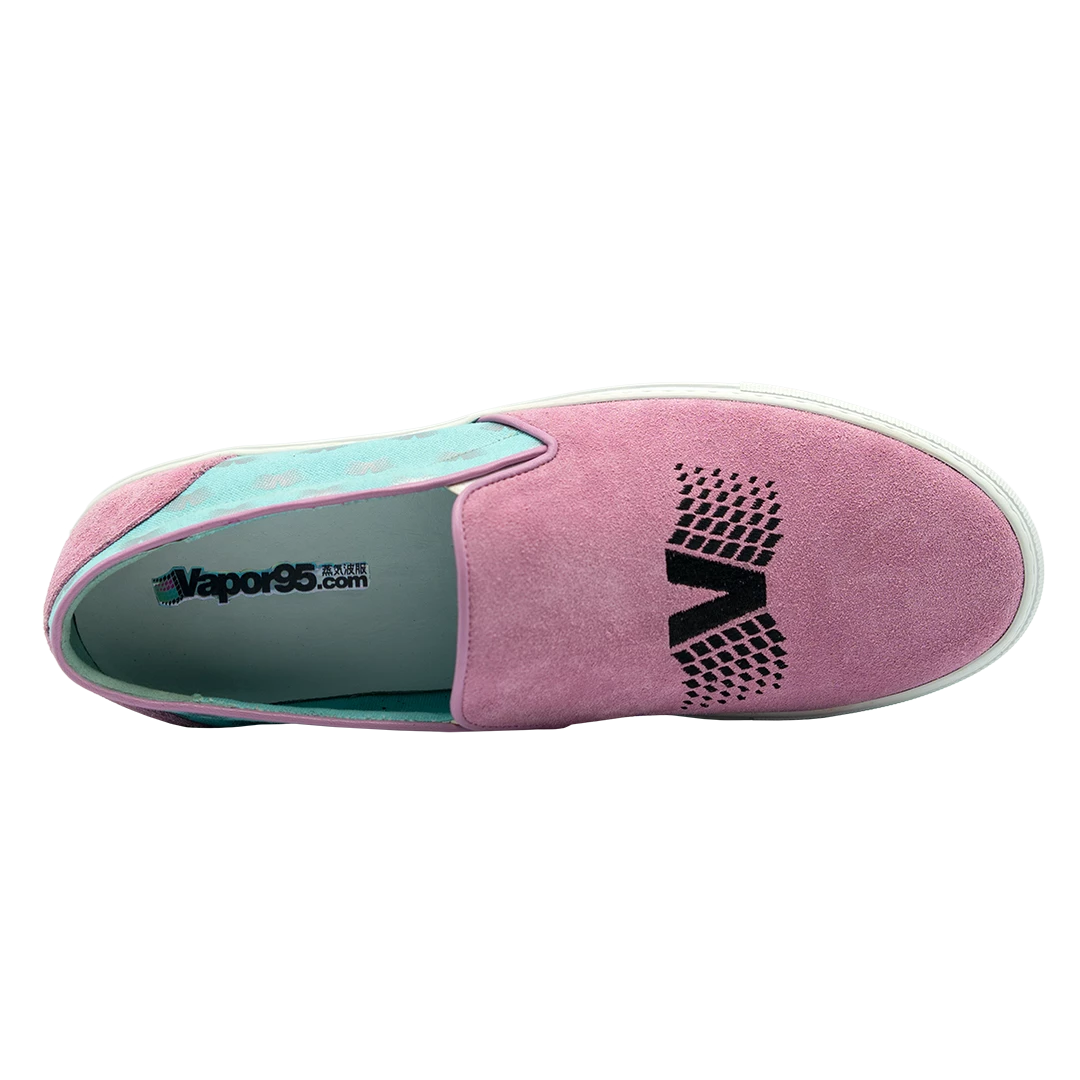 - PRESENTING THE PASTEL DREAM SLIP-ON! A VAPORWAVE INSPIRED PINK SUEDE AND BLUE CANVAS SNEAKER, FEATURING A DURABLE, LIGHTWEIGHT RUBBER SOLE, ULTRA-COMFORTABLE CUSHIONED REMOVABLE INSOLE, SOFT LEATHER TO PROTECT ANKLE, STITCHING DETAILS, EMBROIDERED FRONT LOGO AND REFLECTIVE VAPOR95 LOGOS PRINTED ON SIDES.